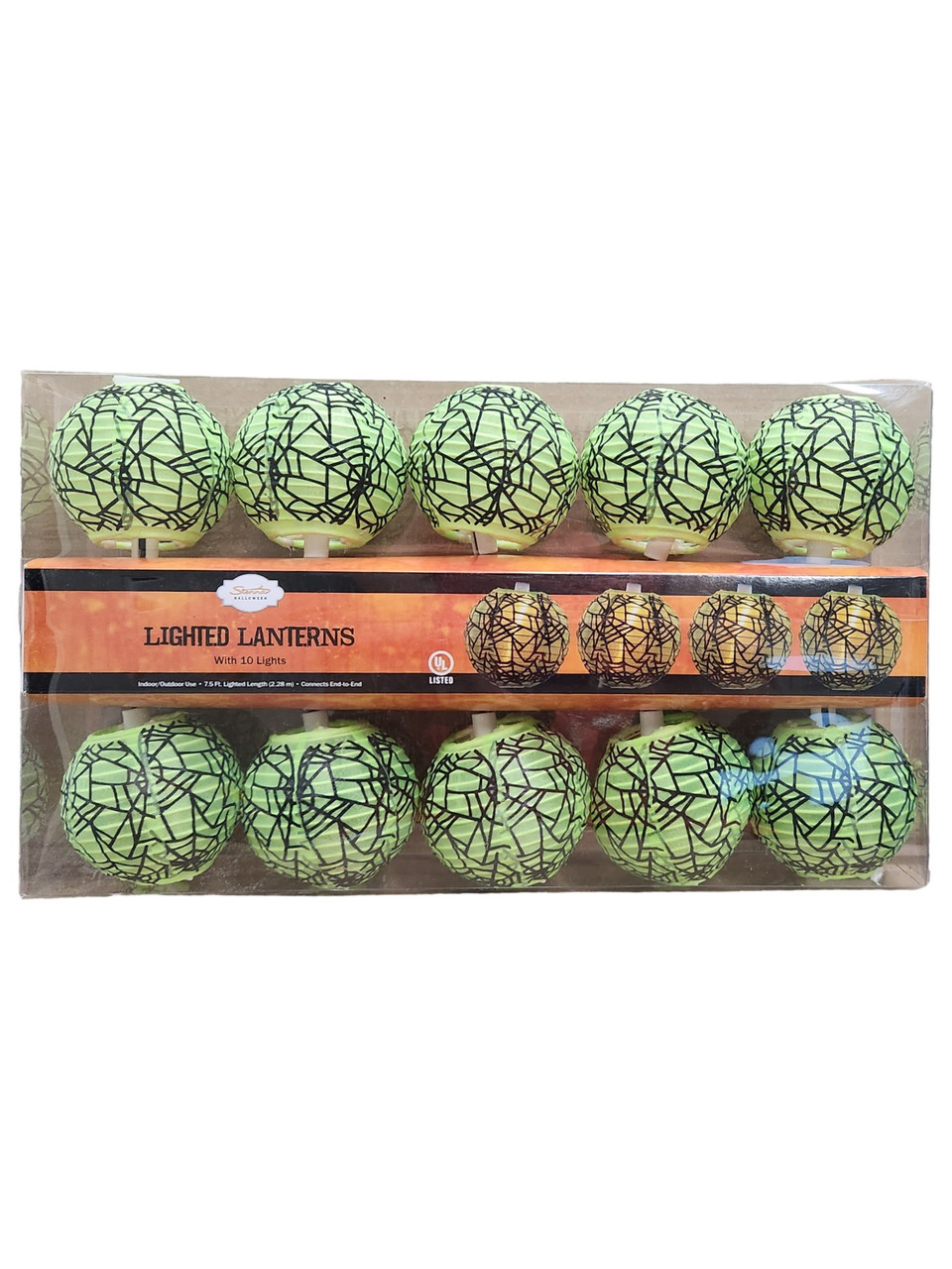 - 10 Count Neon Green Halloween Lantern Style Spiderweb Print String Lights