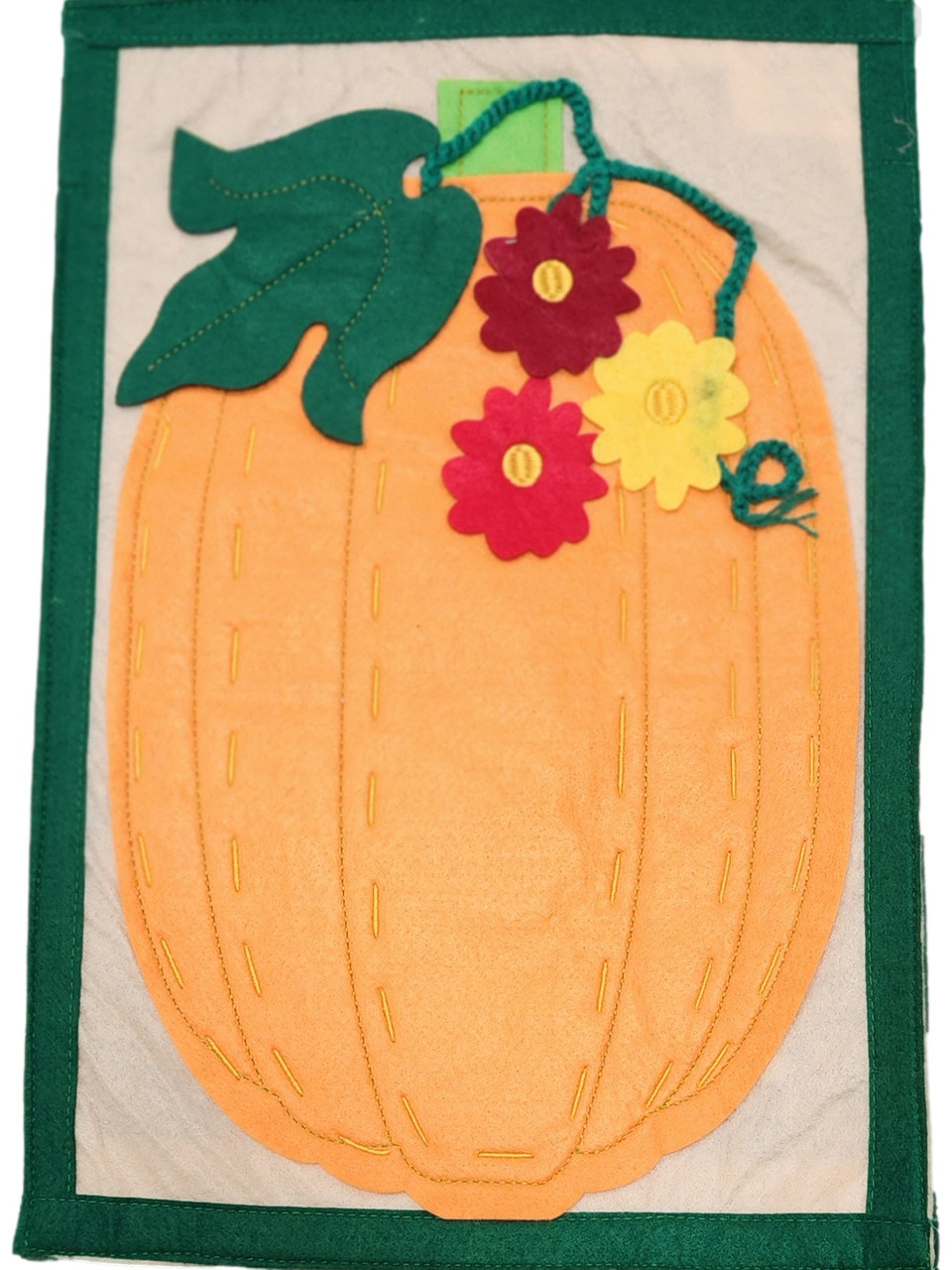 Get ready for fall and Thanksgiving with this festive fall colored handcrafted 3D pumpkin and flowers outdoor fabric garden flag yard decoration