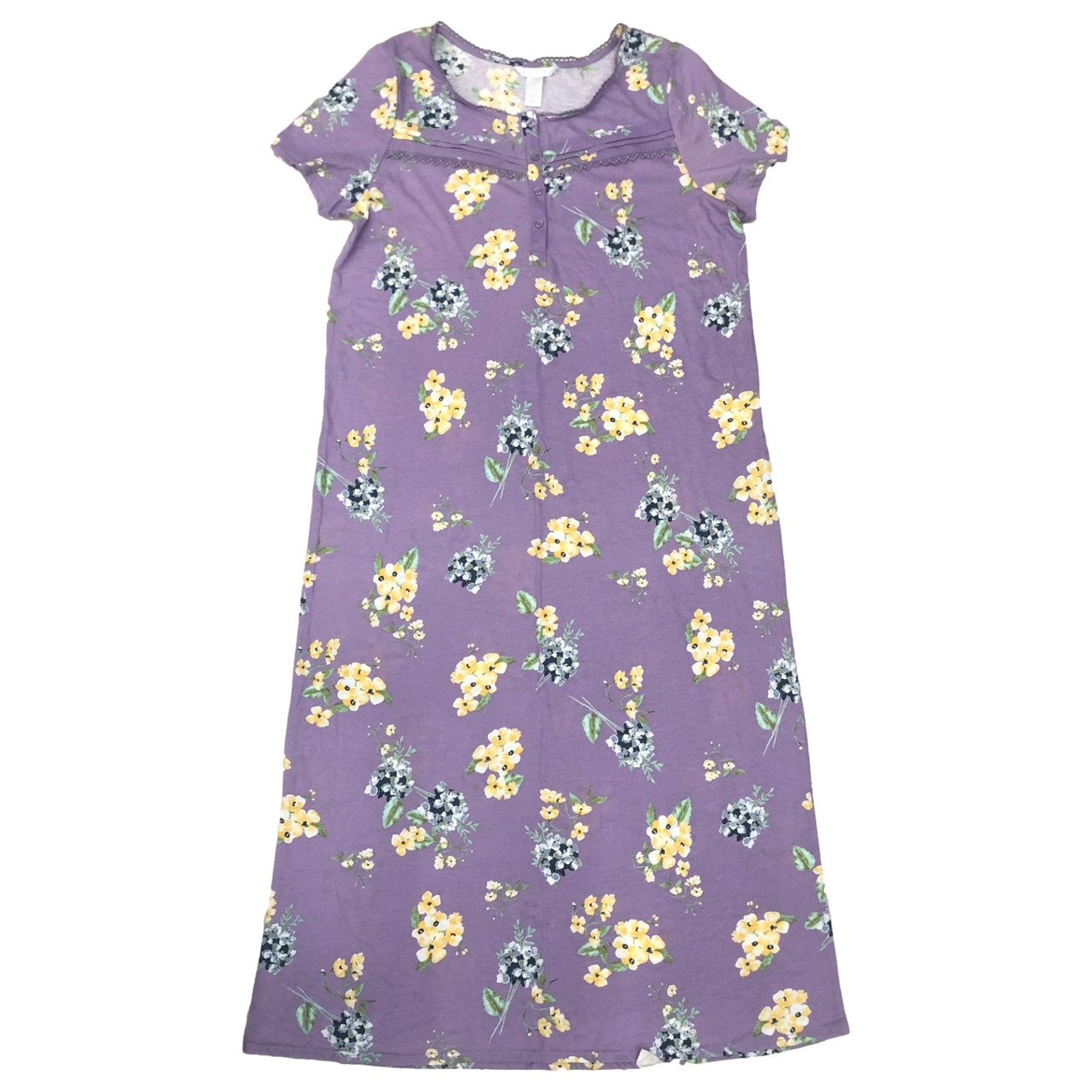 You will love the lightweight purple & yellow floral print cap sleeve nightgown.
