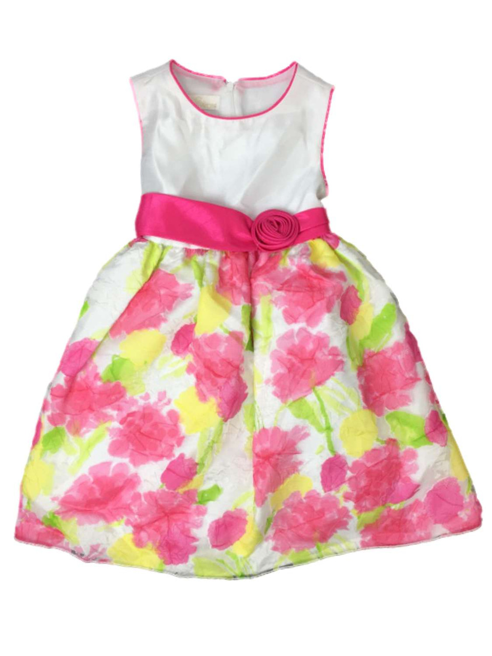 - American Princess Girls Pink & Yellow Watercolor Rose Party Dress Flower Girl
