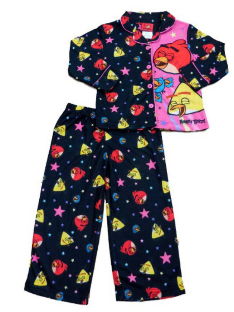 - Angry Birds Girls Black Pajama Long Sleeve Top & Bottoms 2 Piece Sleep Set PJs