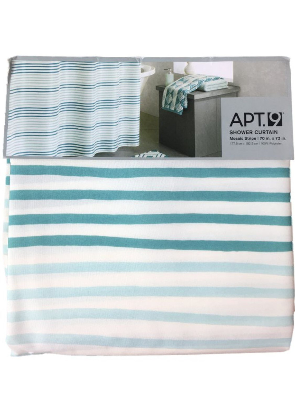 - Apt 9 Teal Blue Mosaic Stripe Fabric Shower Curtain Pretty Striped Bath