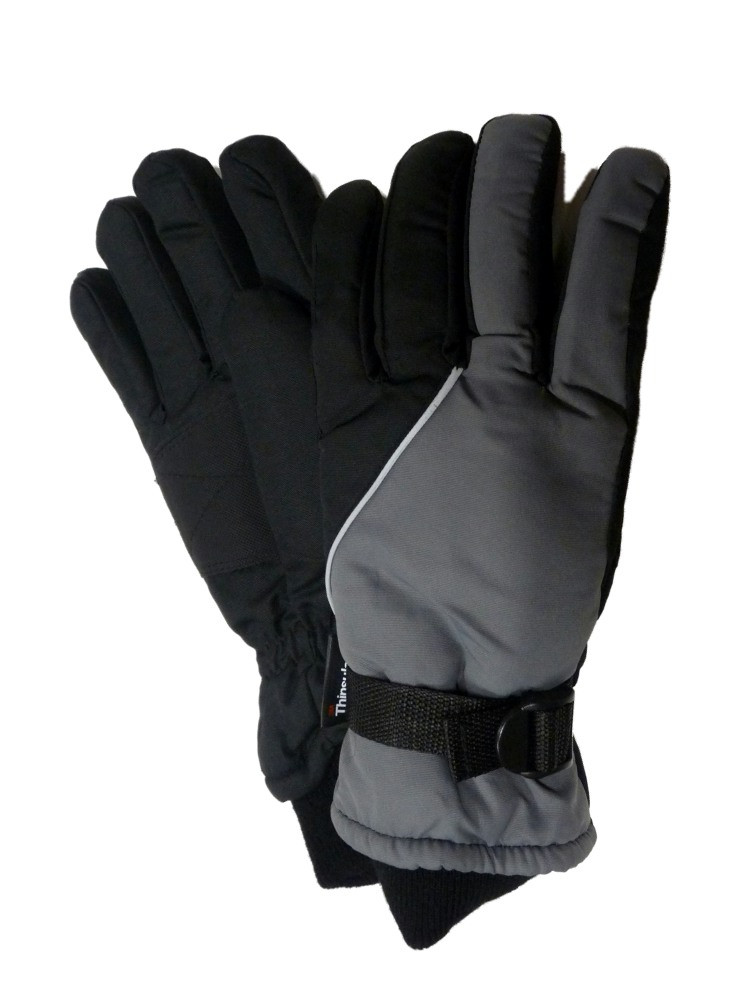 - Aquarius Boys Gray & Black Snow & Ski Gloves Thinsulate Insulated Wrist Strap