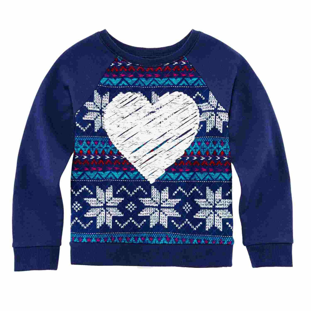 - Toddler & Girls Nordic Blue Heart & Snowflake Holiday Sweatshirt