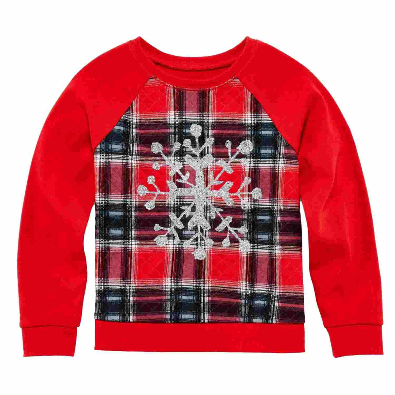 - Toddler & Girls Red Plaid Glitter Holiday Snowflake Sweatshirt