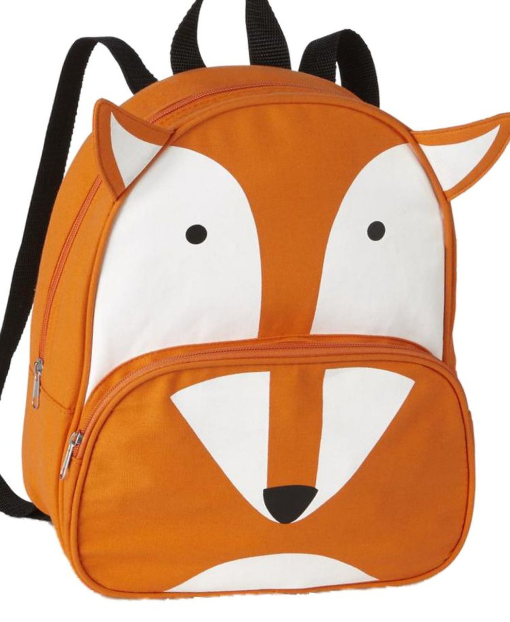 - Darling fox shaped 13 inch backpack with orange and white coloring