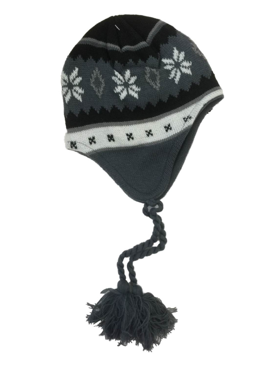 - Ben Berger Boys Gray & Black Snowflake Fleece Lined Winter Trapper Hat
