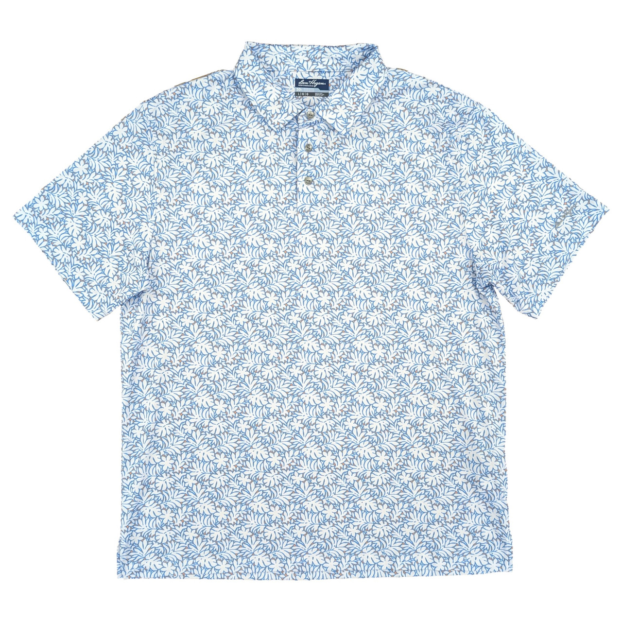 - Ben Hogan Mens White Blue Floral Short Sleeve Performance Golf Polo Shirt