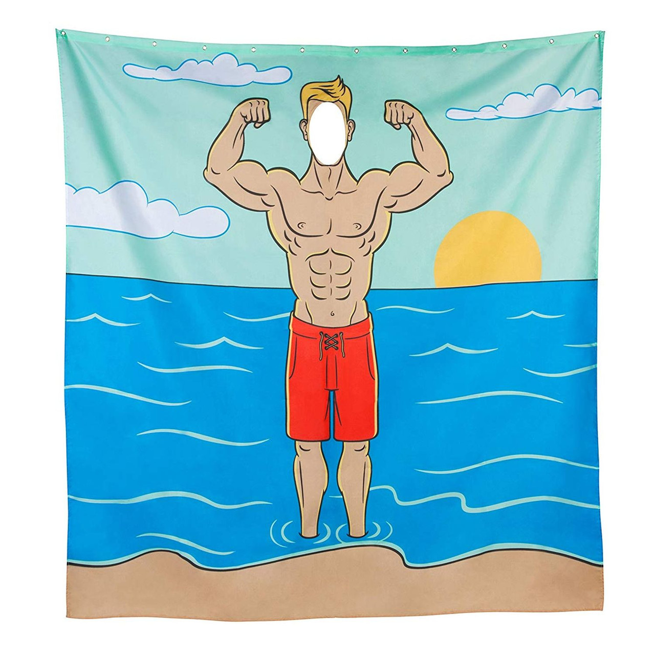 - Get the body you always wanted in seconds, just peep out of the porthole of this hilarious shower curtain!