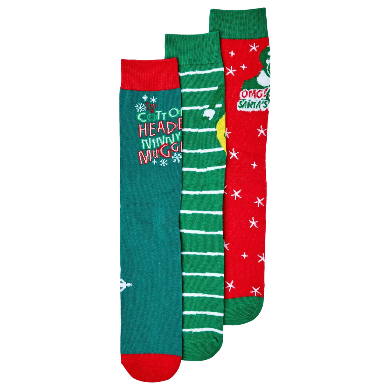 - Bioworld Adult Mens 3 Pair Crew Socks Set Buddy Elf Movie Christmas Holiday