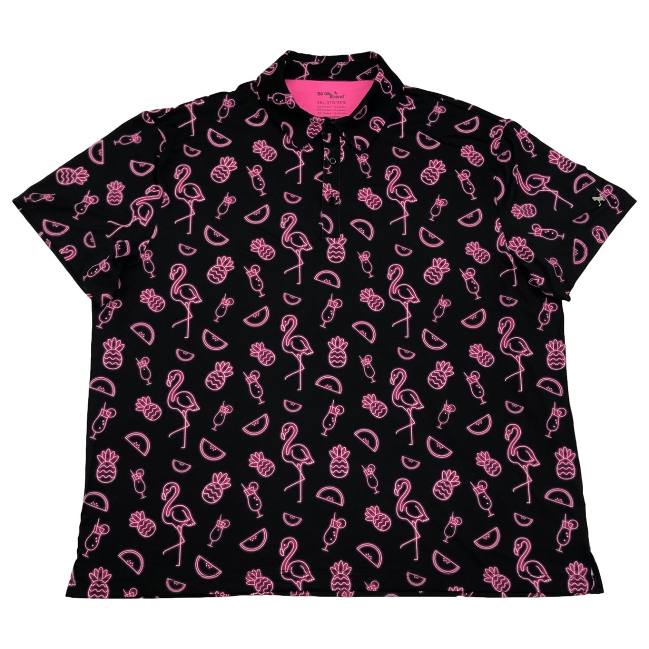 - Birdie Bound Mens Black & Pink Flamingo Print Short Sleeve Golf Polo Shirt 3XL
