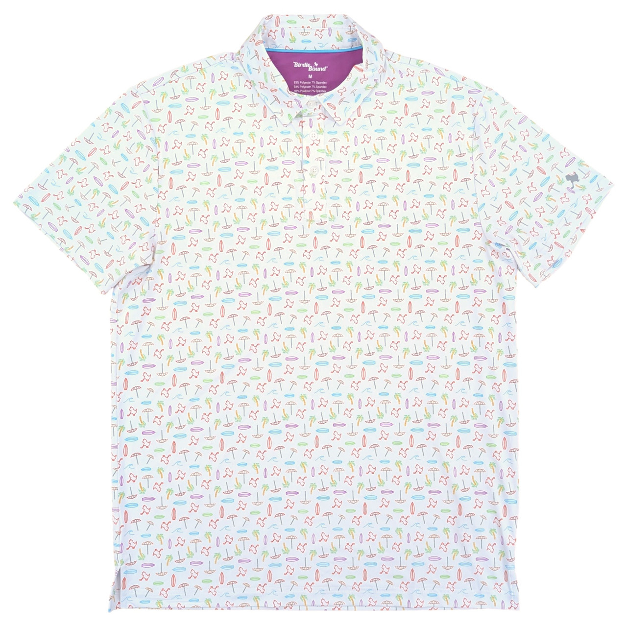 - Birdie Bound Mens White Printed Short Sleeve Golf Polo Shirt