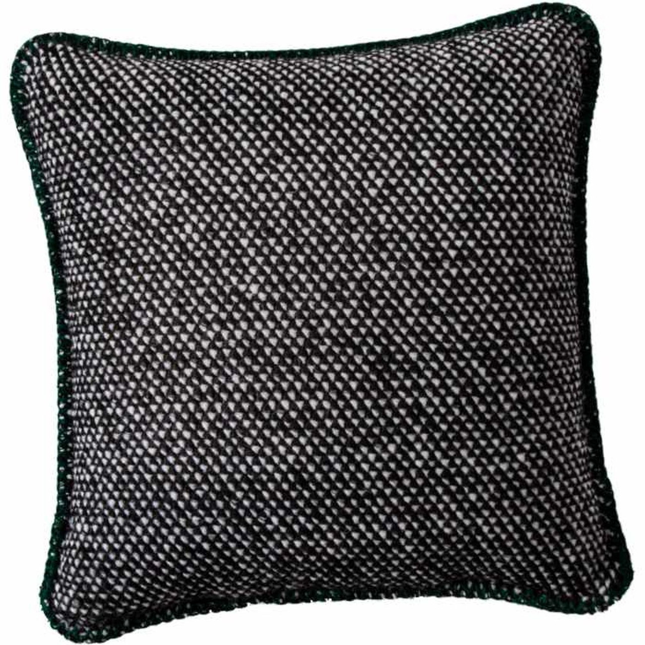 - Black and white tweed pattern with green whipstitched edge