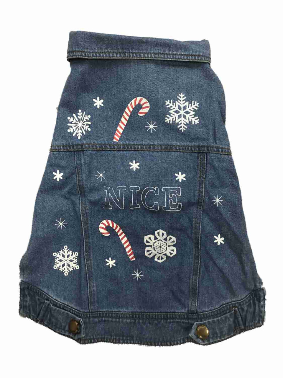 Your dog will look festive and ready to go for the Christmas party in this cute blue denim "Nice" vest!
