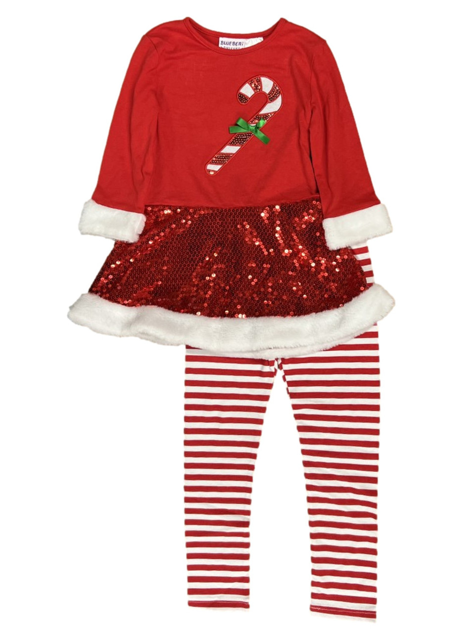 - Blueberi Boulevard Girls Red Sequin Candy Cane Holiday Christmas Outfit