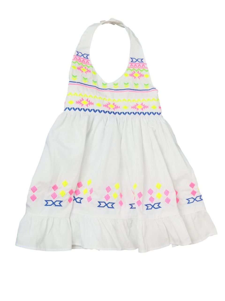 - Blueberi Infant Baby Girls White Halter Neon Aztec Sundress Sun Dress
