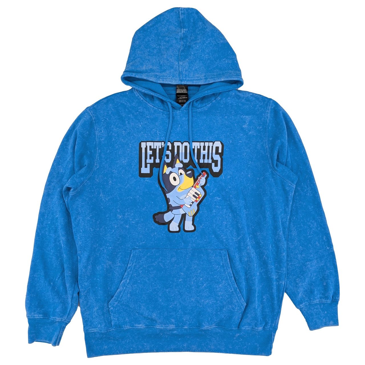 - Bluey Mens Blue Mineral Wash Front And Back Graphic Hoodie Sweatshirt