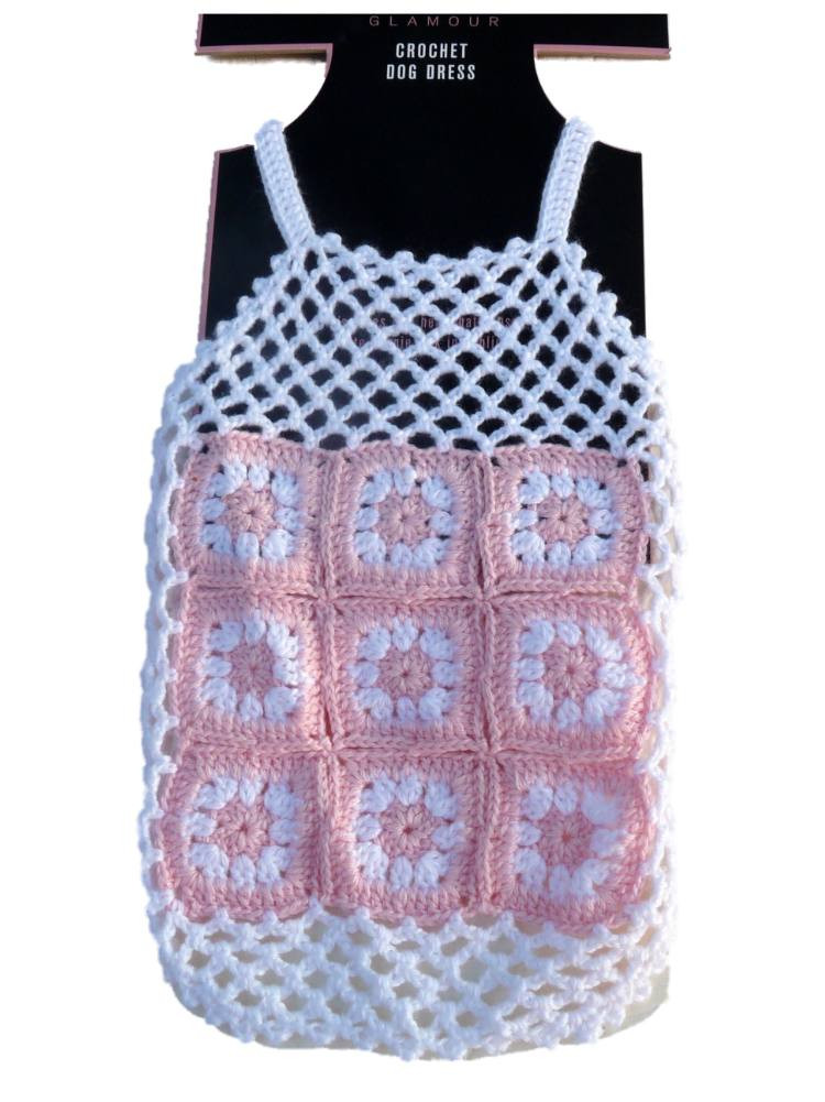 This pretty pink and white crochet dog dress is perfect for spring and summer days!