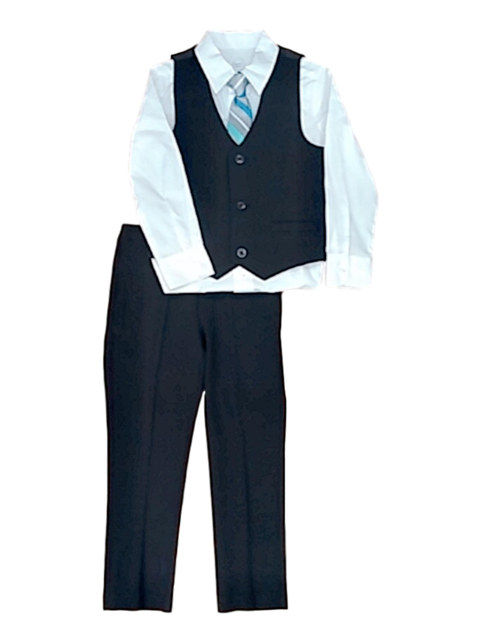 - Boys 4 Piece Set Tie White Button Down Shirt Black Vest & Pants Outfit Set