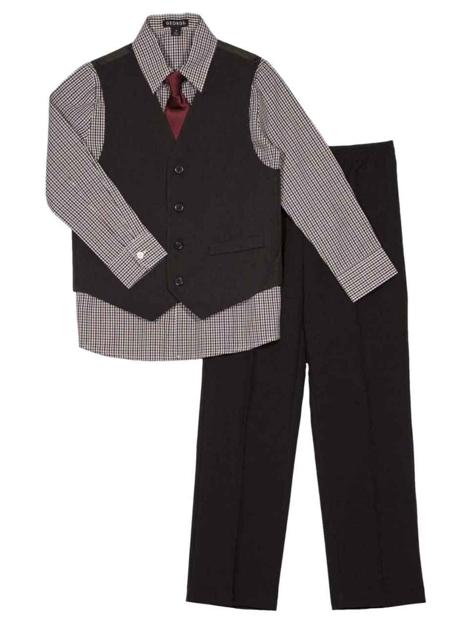 - Boys 4 Piece Suit Black & Red Check Dress Up Holiday Outfit Vest & Tie Set