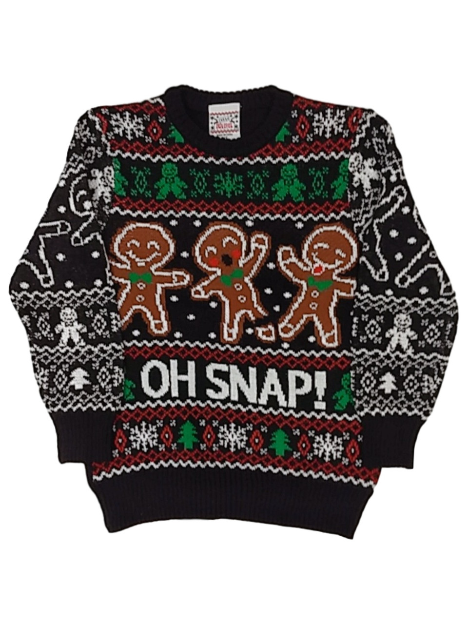 - Boys Black Gingerbread Man Oh Snap! Christmas Ornaments Holiday Knit Sweater XS