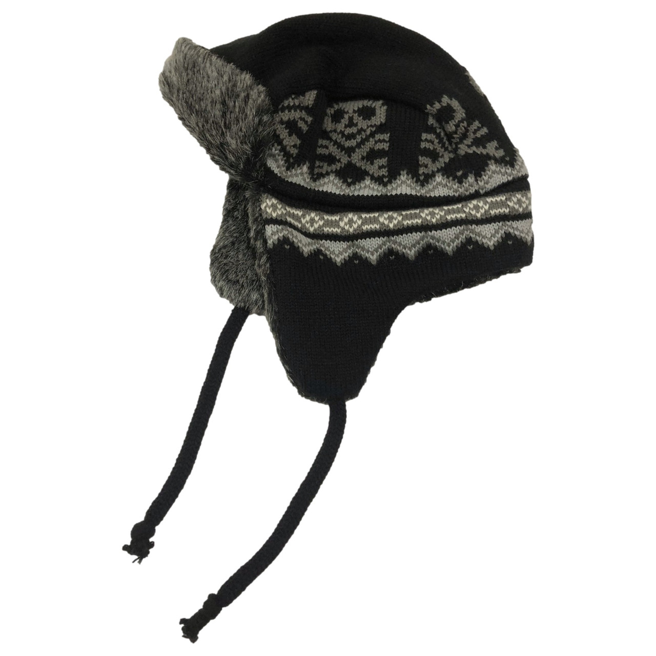 - Boys Black & Gray Skull Print Trapper Hat Plush Lined