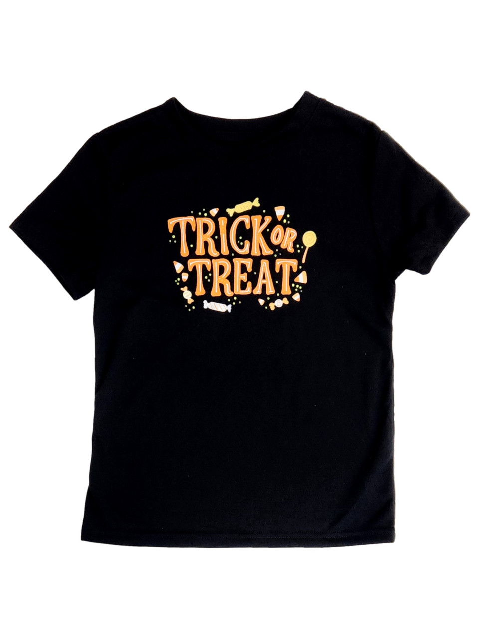 He will love wearing this cool black short sleeved trick or treat pajama tee shirt! It's perfect for Halloween!