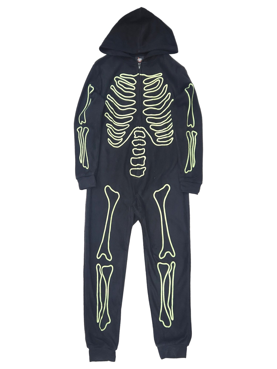 - Boys Black & White Skeleton Glow In The Dark Fleece Halloween Sleeper Medium 8