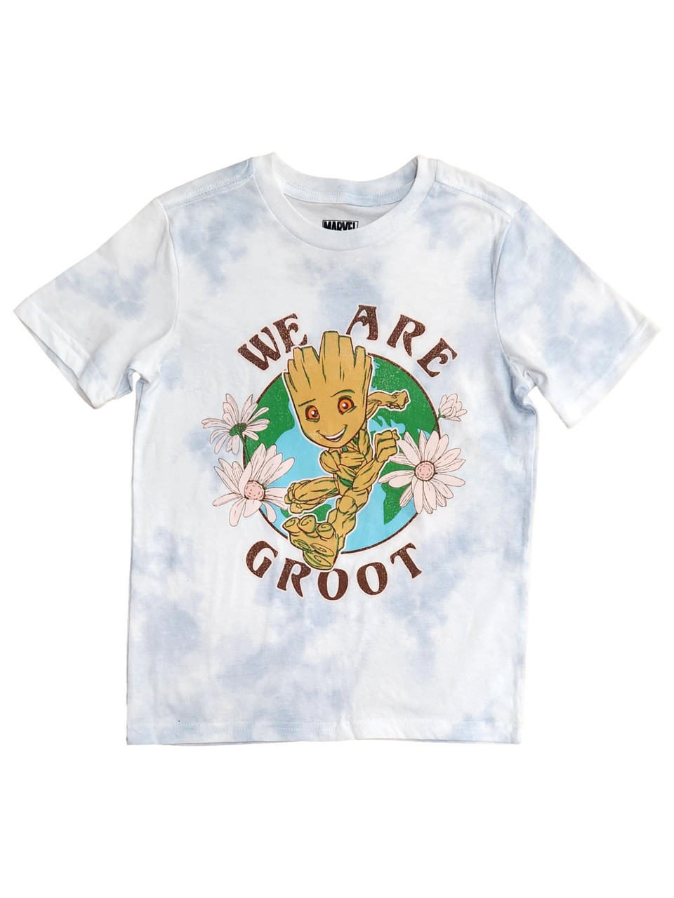 - Boys Blue & White Tie Dye Short Sleeve "We Are Groot" T-Shirt Tee Shirt