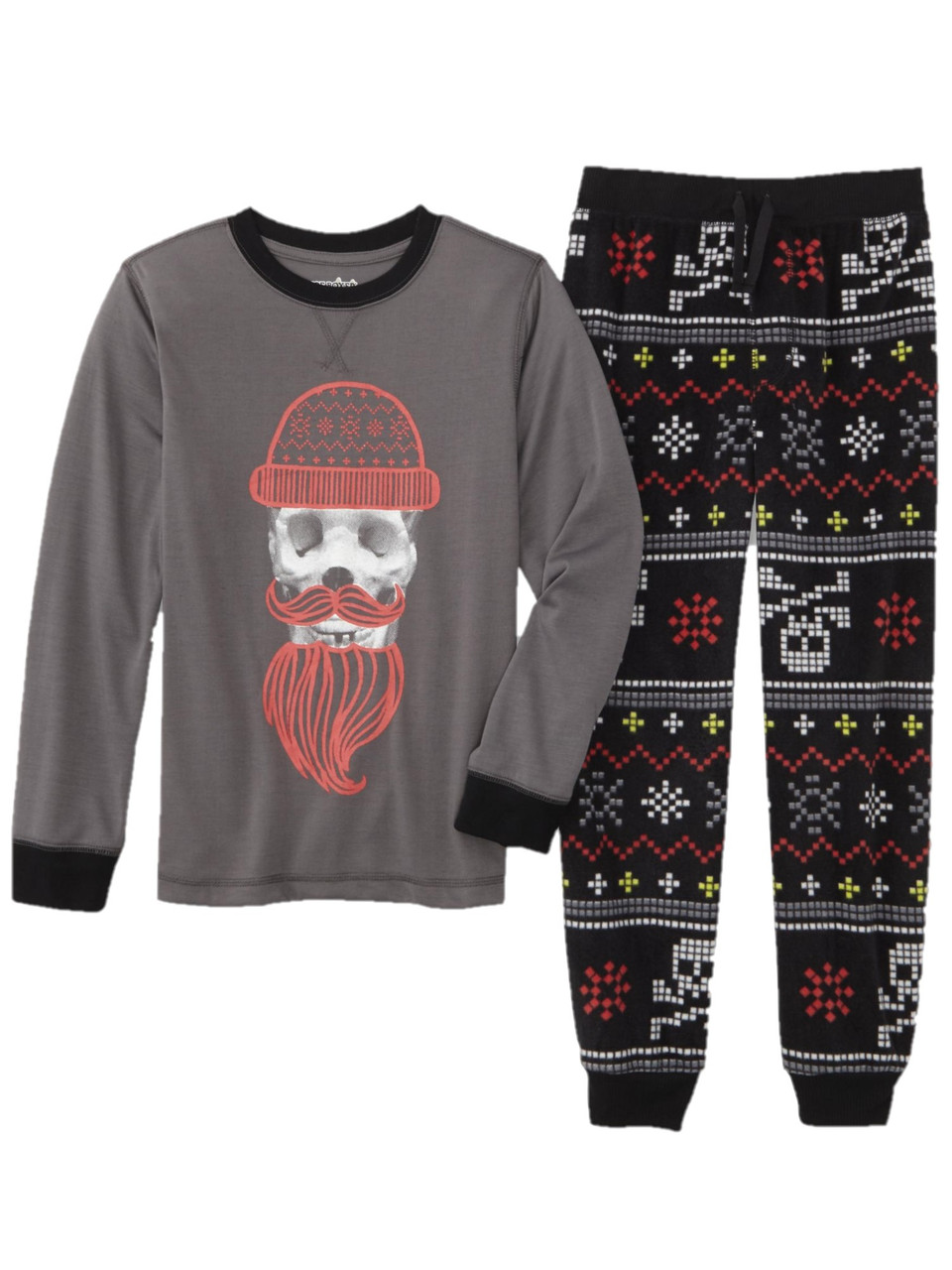 - Boys Dark Grey Skull Hipster Long Sleeve Shirt & Pant 2 Piece Pajama PJ Set