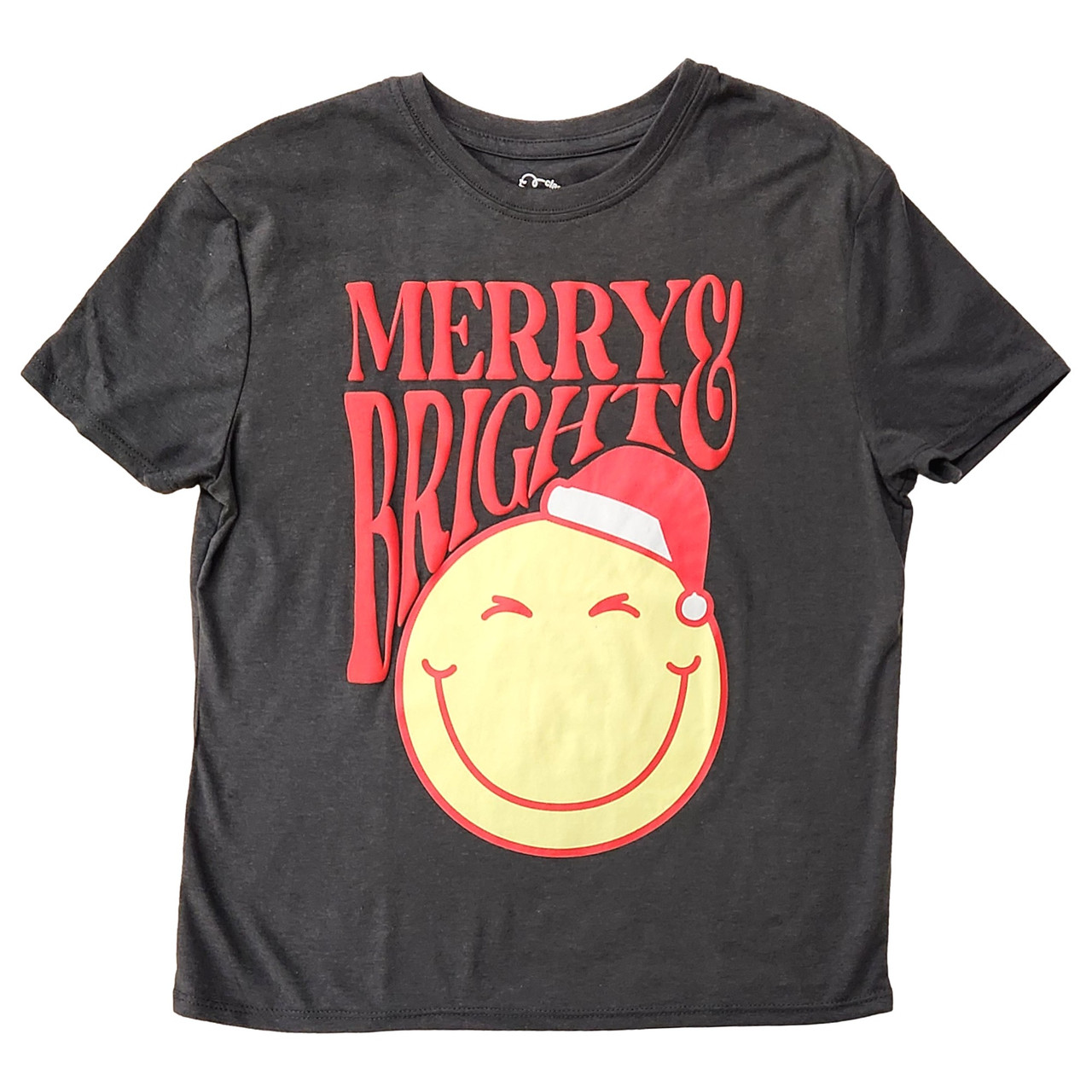- Boys Gray Santa Hat Smile Face Christmas Holiday Tee T-Shirt