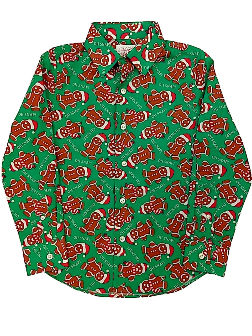 This cute green gingerbread man "Oh Snap! long sleeve button down holiday dress shirt is sure to be a favorite!