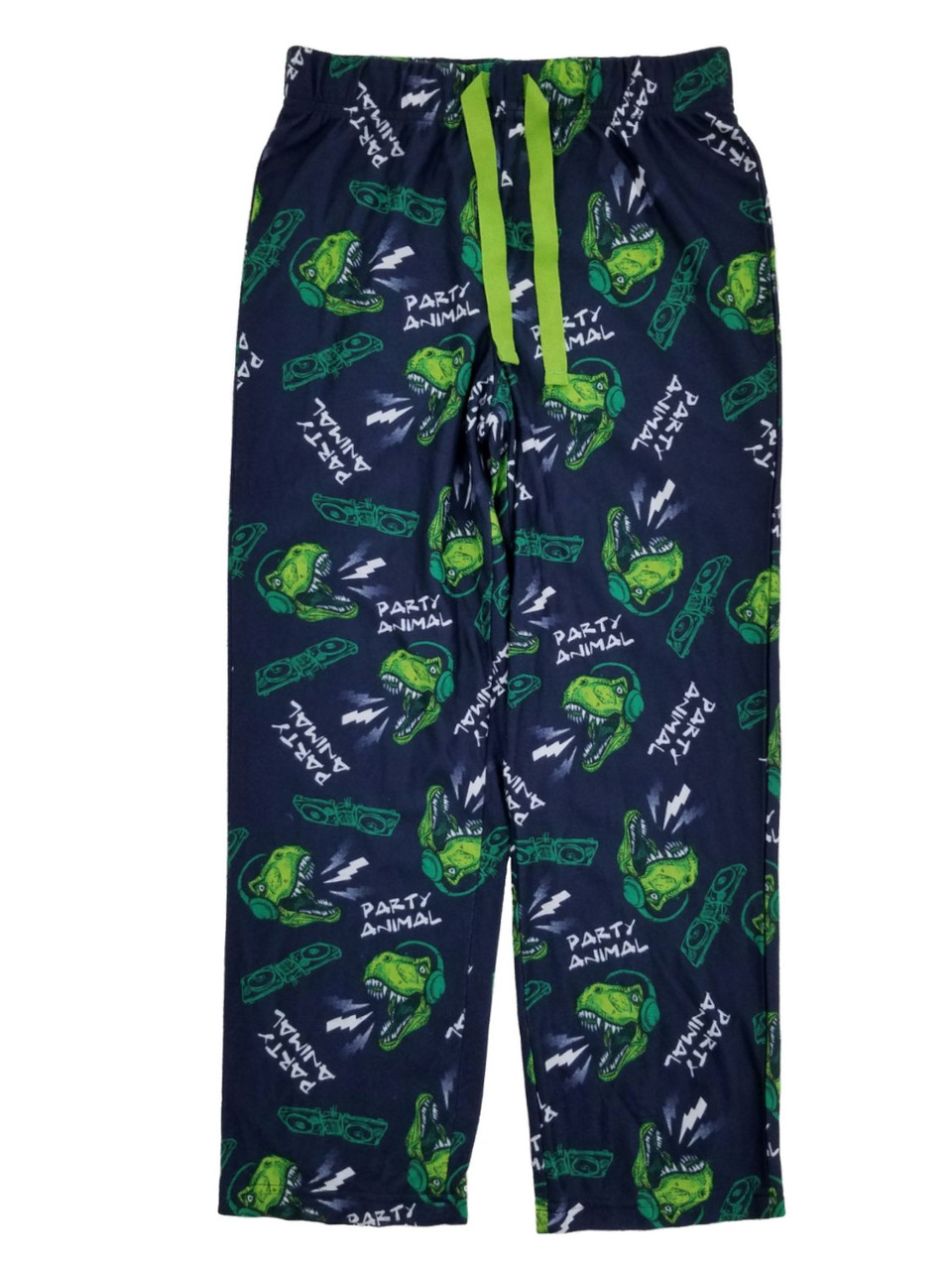 - Boys Navy & Green Party Animal Dinosaur Flannel Sleep Pants Pajama Bottoms