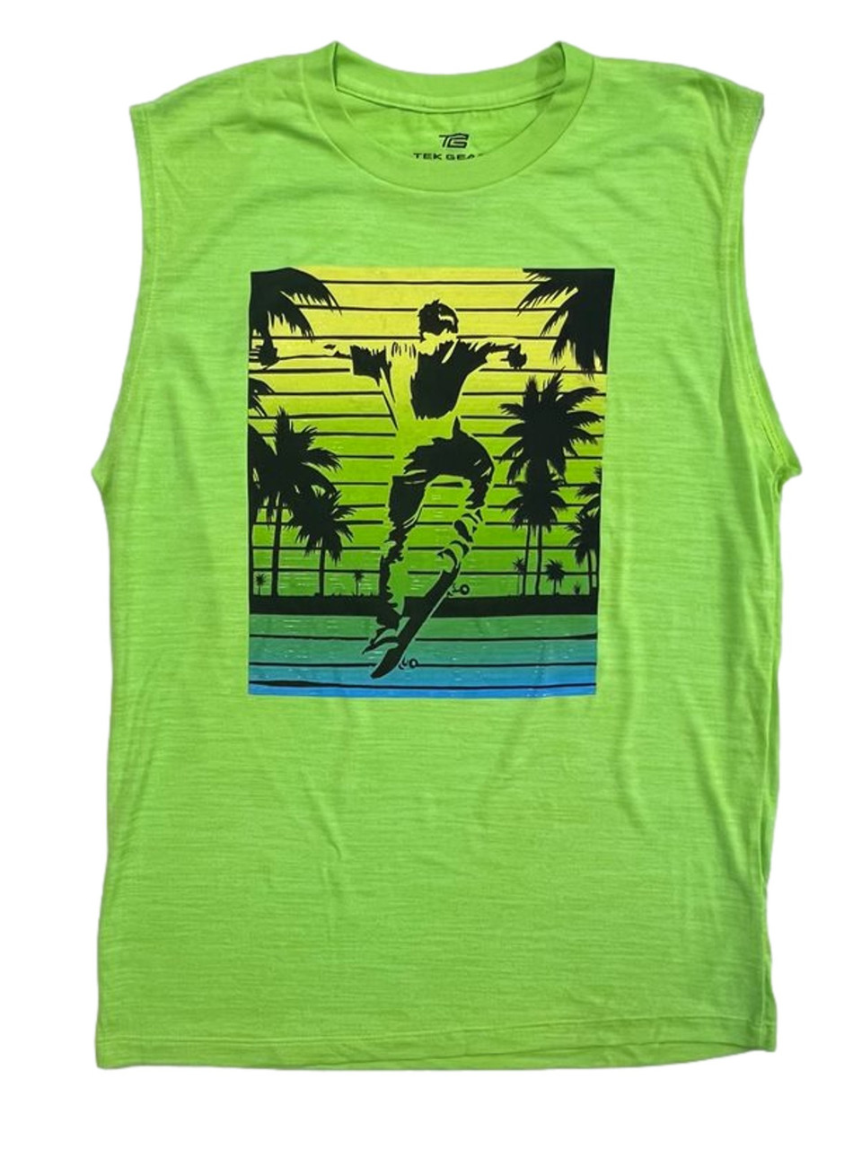 - Boys Neon Green Beach Theme Skateboard Tank Top Sleeveless Shirt