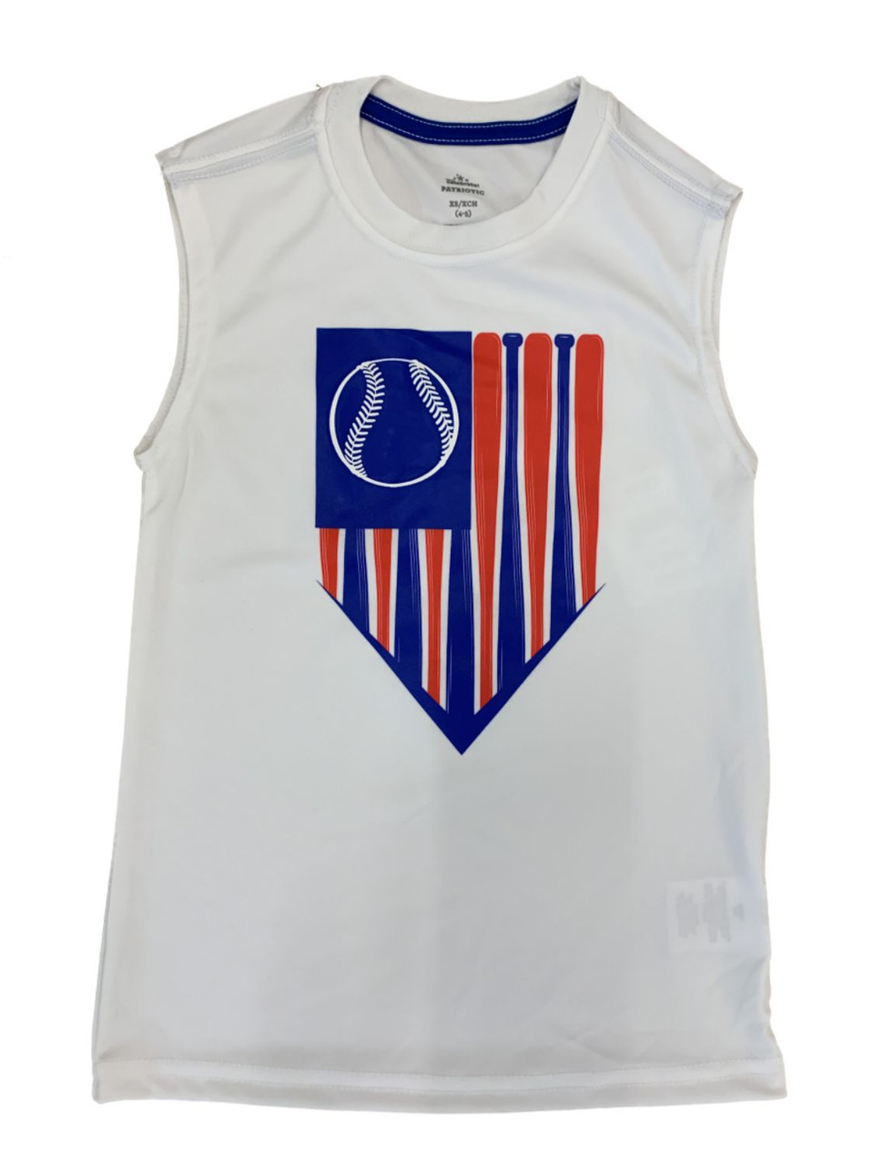 - Boys Red White Blue Baseball Flag Athletic Tank Top Sleeveless Tee Shirt