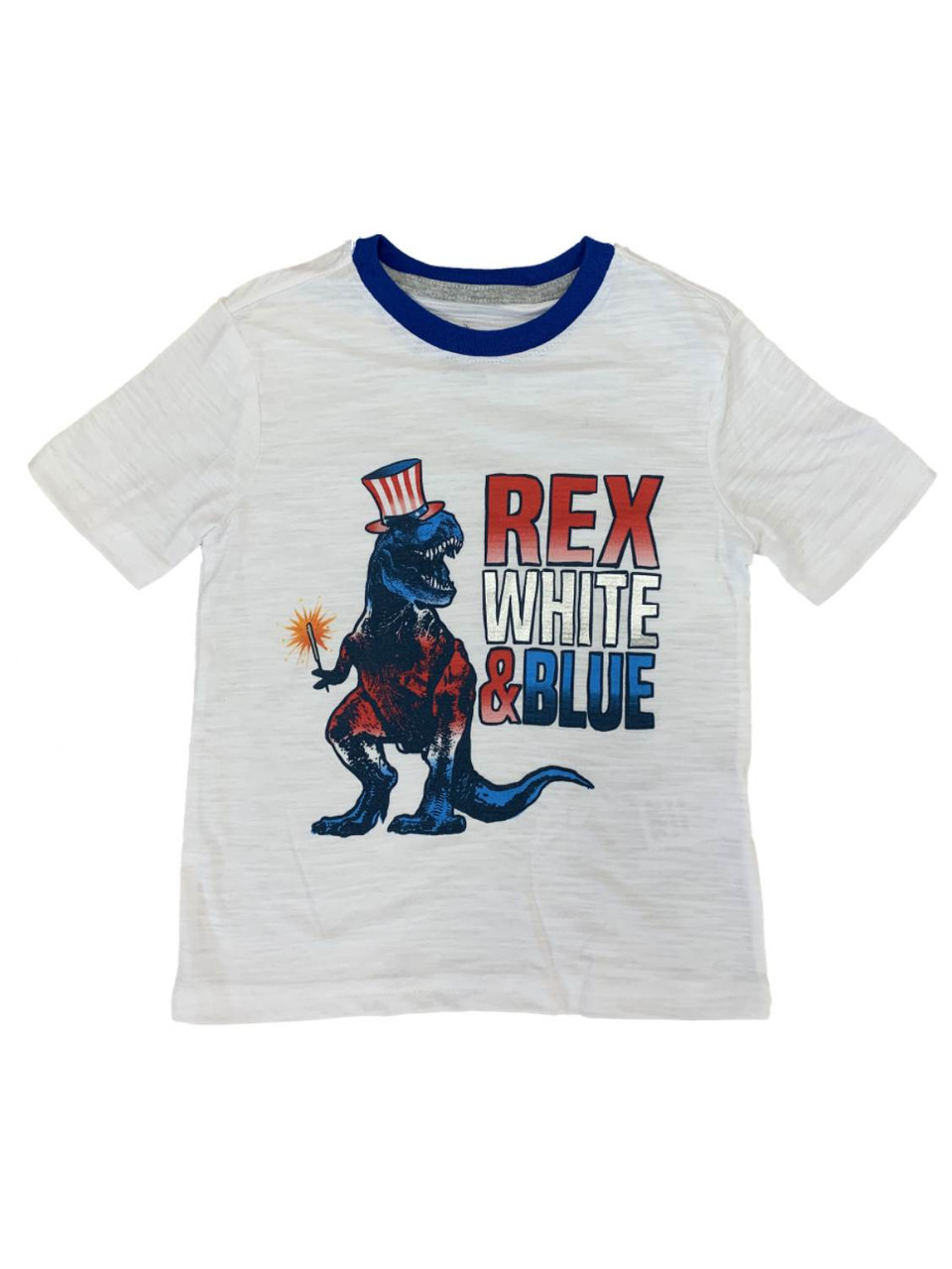 - Boys Rex White & Blue Patriotic Dinosaur T-Shirt