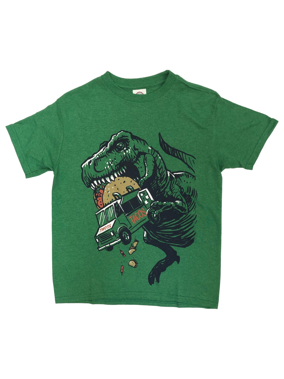 - Boys Short Sleeve T-Rex Dinosaur Eats Taco Truck T-Shirt Tee Shirt