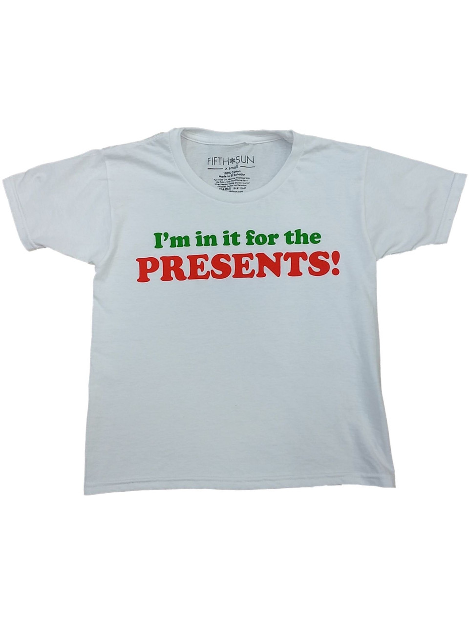 This boys white "I'm in it for the presents" Christmas t-shirt is sure to be a favorite this season!