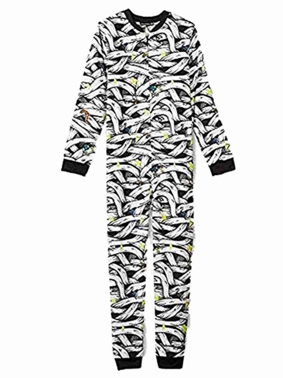 - Boys White Mummy Print Sleeper Pajamas Polyester Fleece Union Suit