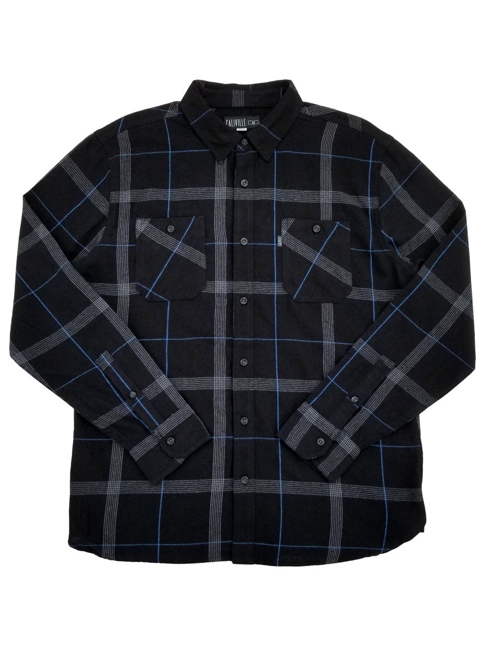 - Caliville Mens Black Plaid Long Sleeve Button-Front Flannel Shirt
