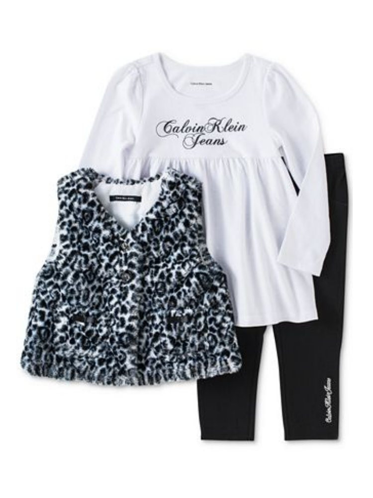 - Calvin Klein Toddler Girls 3pc Outfit Leggings Shirt & Leopard Print Vest Set 4T