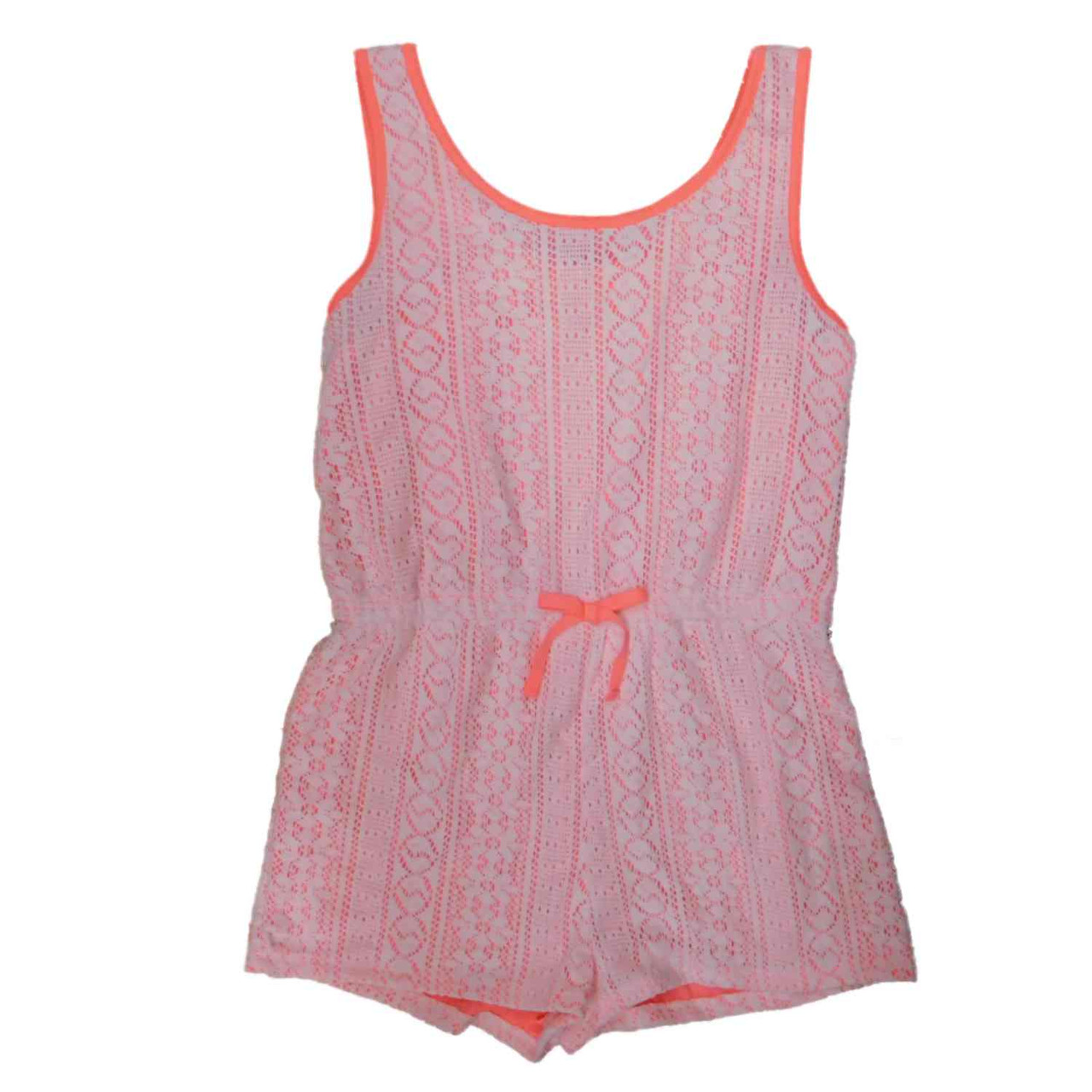 - Canyon River Blues Girls White Neon Orange Sleeveless Lace Overlay Romper