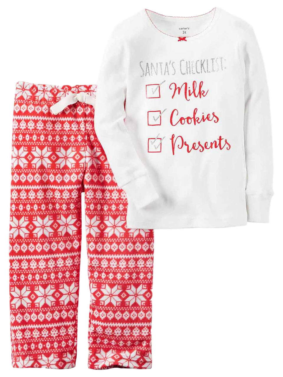 - Carters Girl Santa's Checklist Christmas Holiday 2 Pc Pajama Set PJ Sleepwear