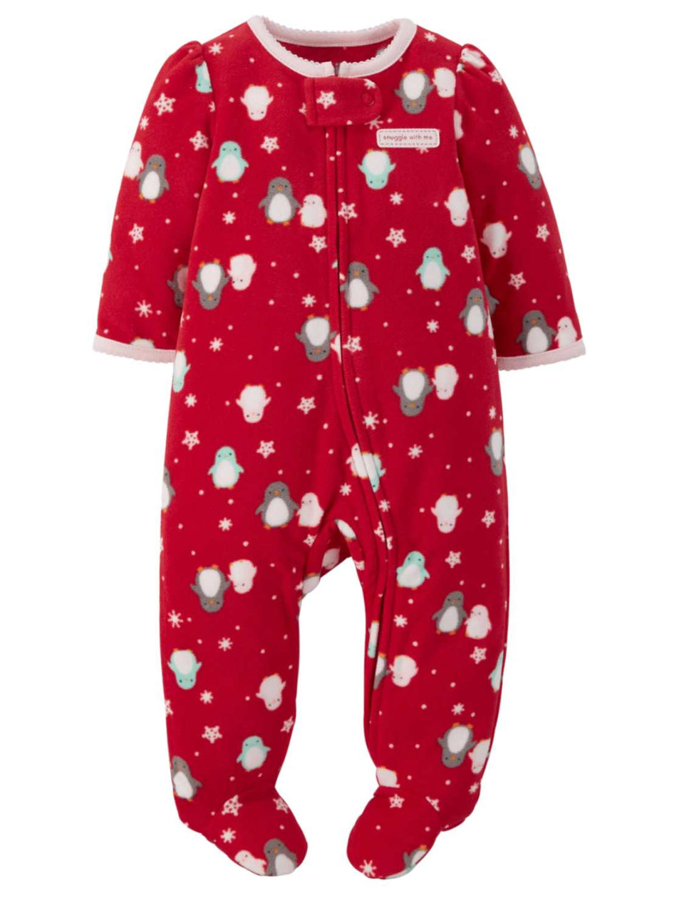 - Carters Girls Red Fleece Penguin Snowflake Sleeper Holiday Christmas Pajamas