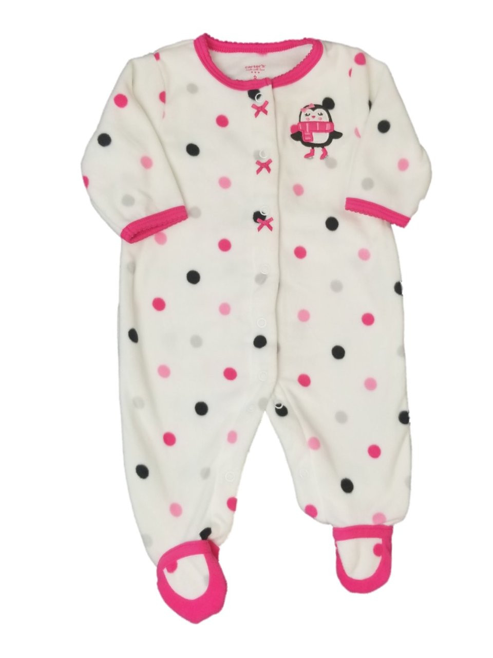 - Carters Girls White Fleece Penguin Pink Bow Sleeper Holiday Christmas Pajamas 3M