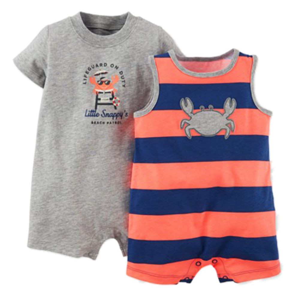 - Carter's Infant Boys 2 Pack Striped & Gray Crab Themed Beach Rompers
