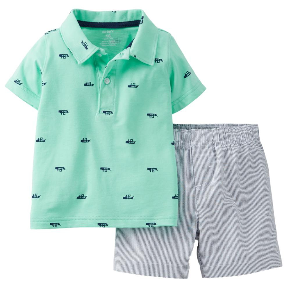 - Carter's Infant Boys 2 Piece Aqua Boat Polo T-Shirt & Striped Shorts 3m