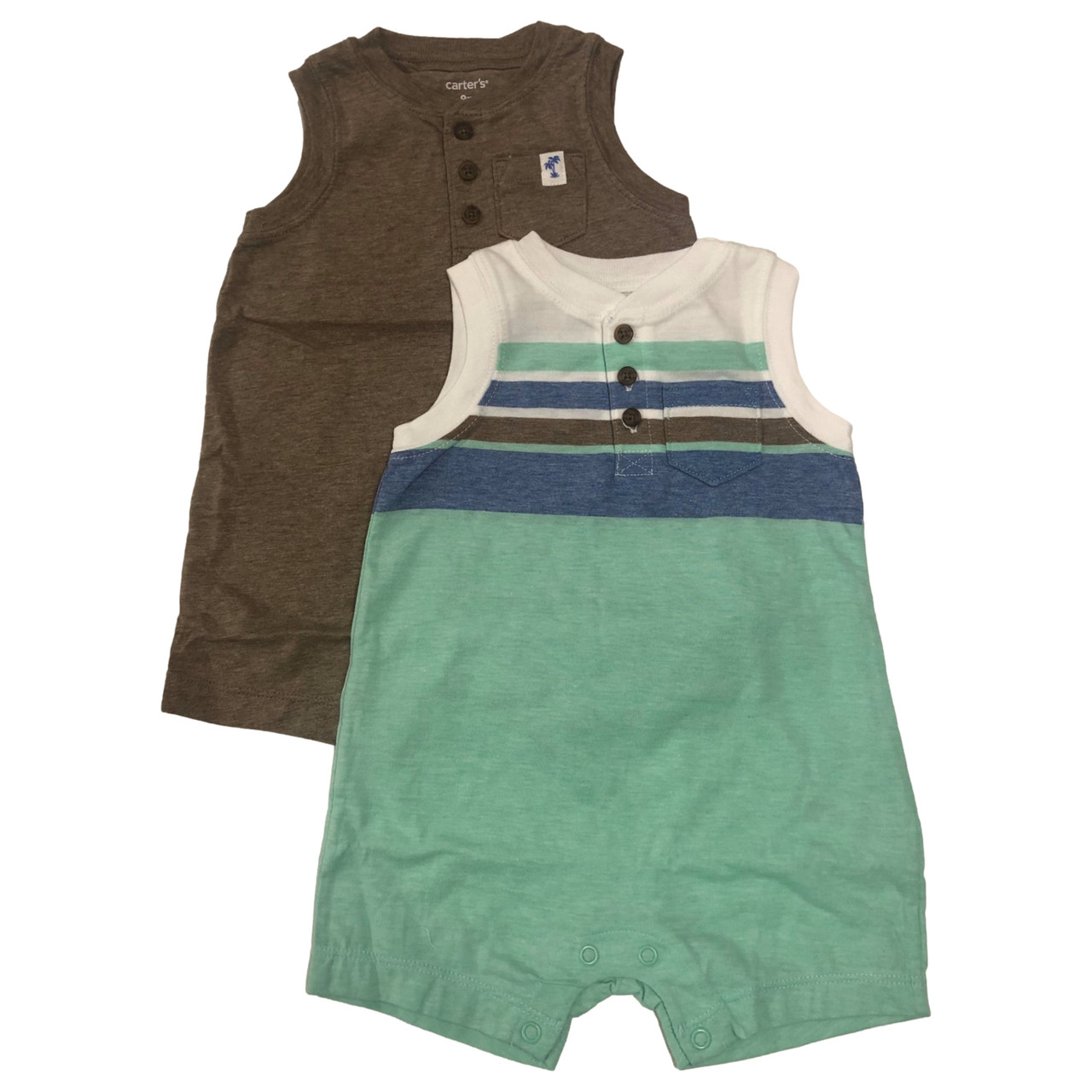 - Carters Infant Boys 2 Piece Baby Romper Set Mint Stripe & Brown Bodysuit Outfits