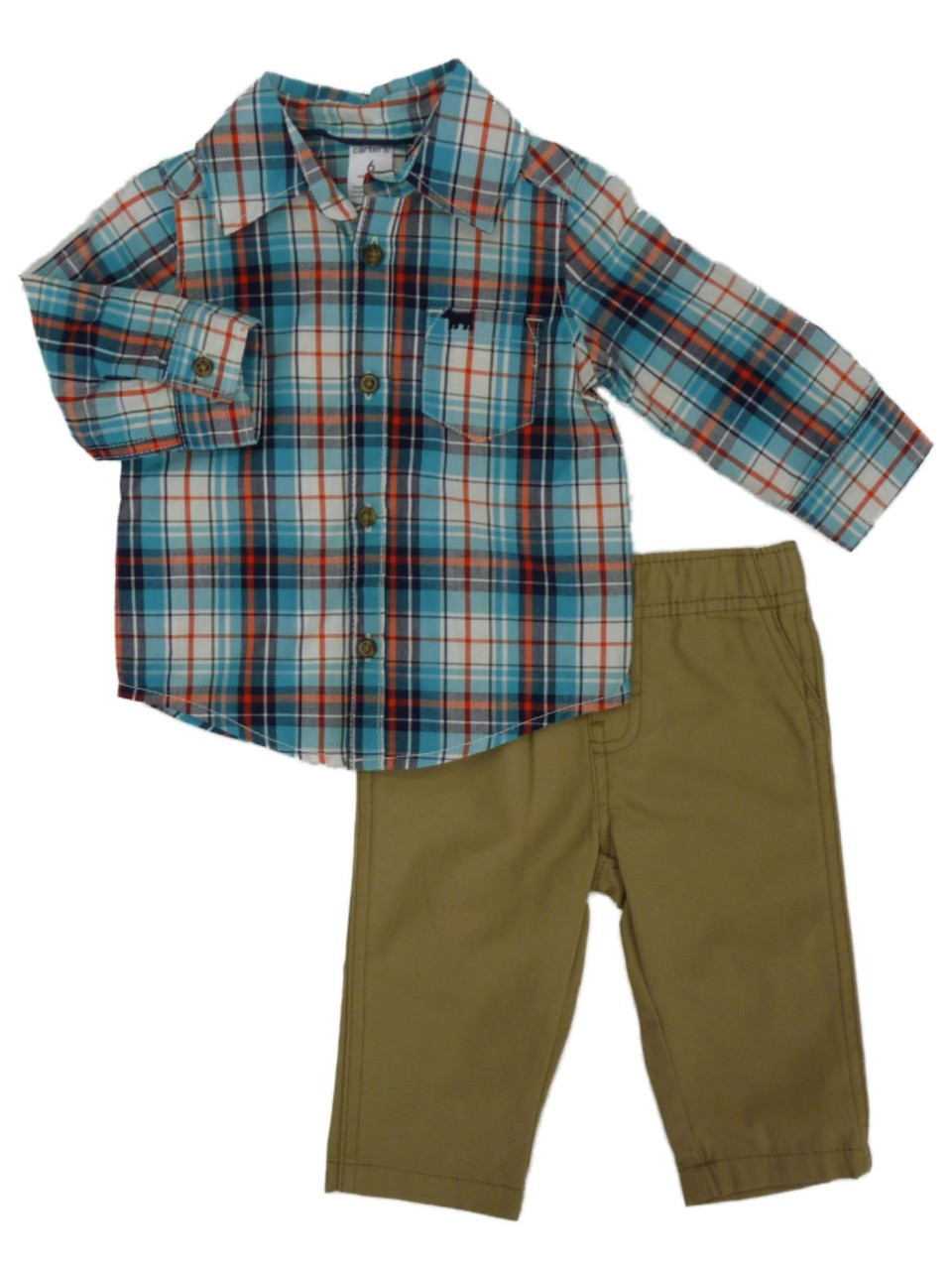 - Carters Infant Boys 2-Piece Blue Plaid Shirt & Khaki Pants Set