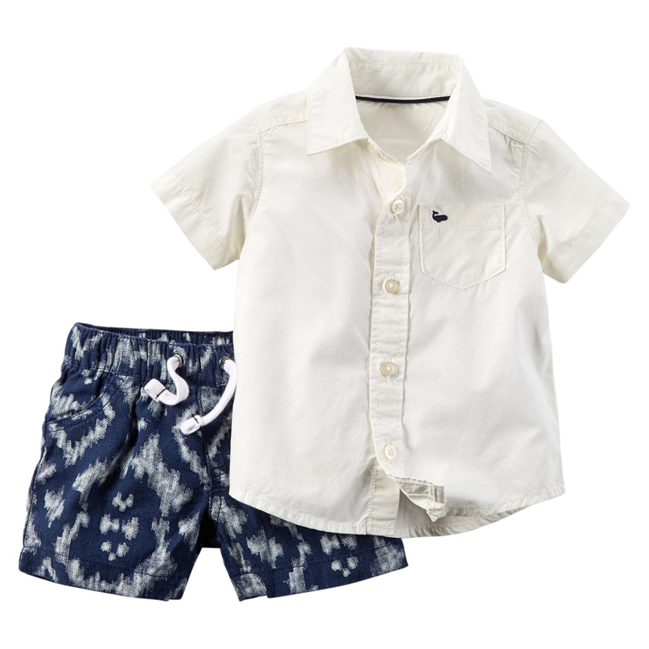 - Carters Infant Boys 2 Piece Ivory Shirt & Short Set